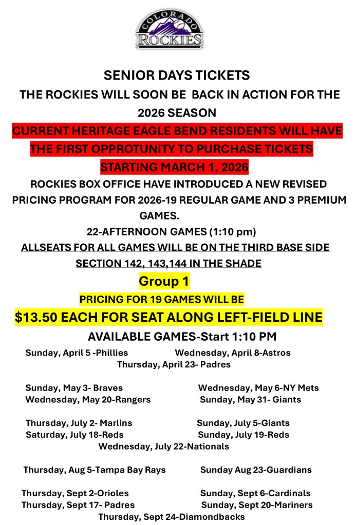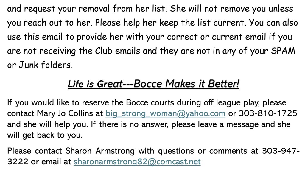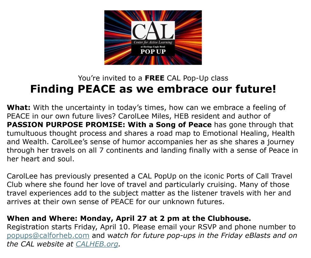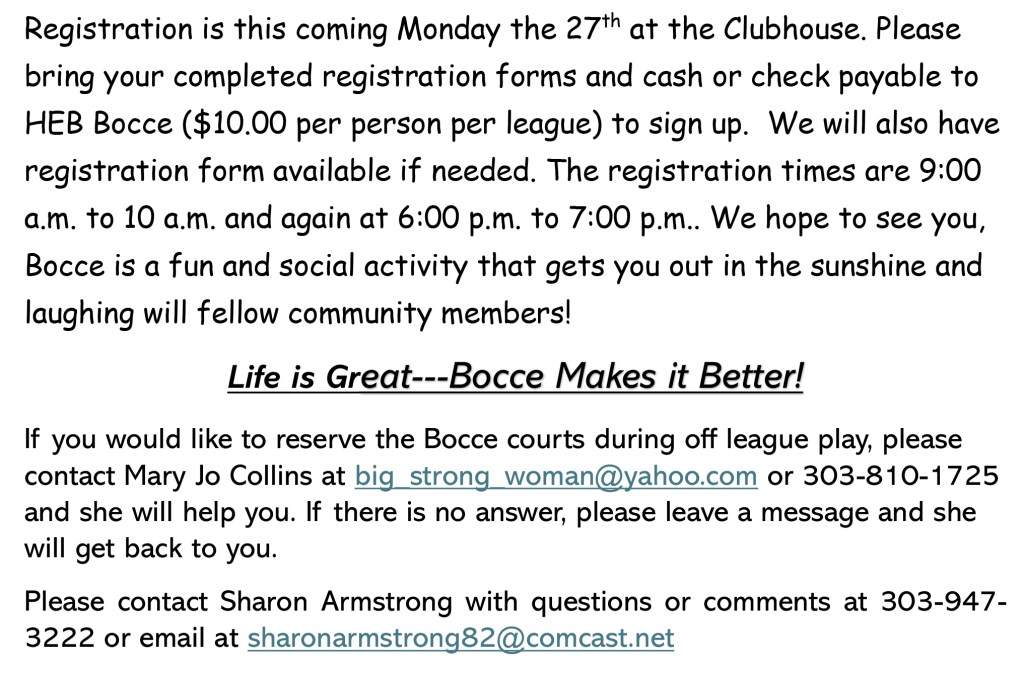 For more information contact Larry and Mary Lou Cotter – 303-680-8344 ldcotter@comcast.net