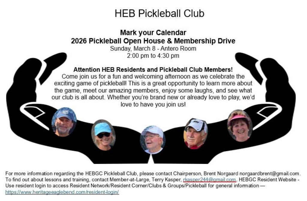 Brimg your HEB neighbors Thursday, 01/29/26 at 5:15 pm and enjoy. We look forward to growing our club in the coming year. As always RSVP for meeting and dinner so we can let the room set up staff and restaurant know.